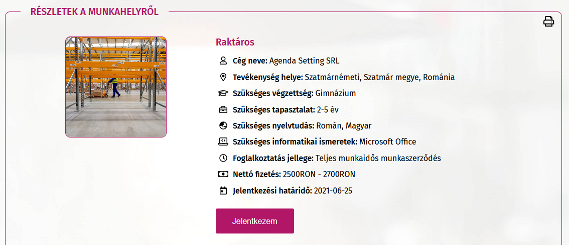 Az állások melletti „jelentkezem” gombra kattintva jelezheti a hirdető felé érdeklődését.